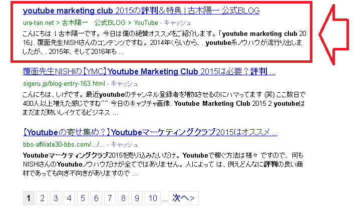 なので、youtube marketing clubというキーワードで、上位表示出来れば、